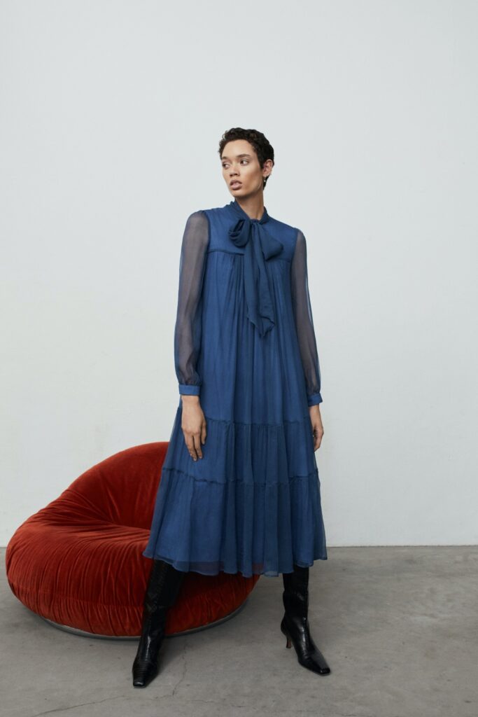— Ta kolekcja odzwierciedla moje pasje, to co lubię w modzie i sztuce. Są tu elementy inspirowane Podhalem, jest klimat lat 70., okresu który dla mnie jest najpiękniejszy w historii mody, są dzwony, długie, kolorowe sukienki, tuniki; jest wariacja na temat stroju do jazdy konnej – luźne bryczesy i marynarka.