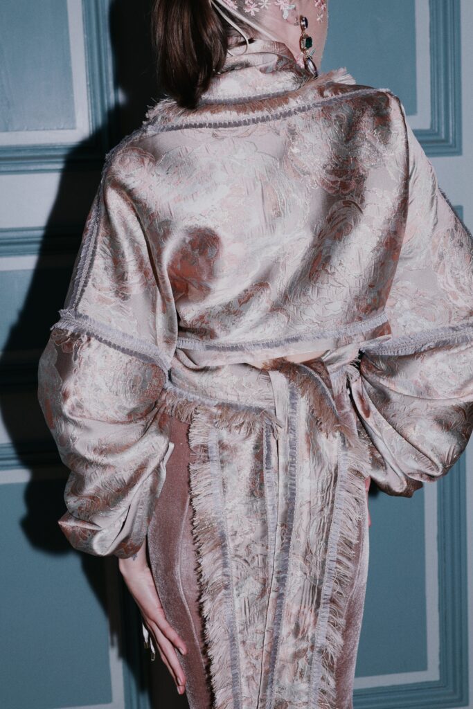 „Każda sylwetka opowiada odrębną historię. Razem tworzą spójną, emocjonalnie nasyconą narrację”. Charakterystyczne są tu objętościowe formy i wielowarstwowość. Dominują falbany oraz ręczne wykończenia – od haftów po gęsto naszywane aplikacje. Do tego żakardy, koronki, szyfony i autorskie tkaniny, opracowane na ich bazie przez samego projektanta.
